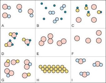 Select every letter representing a box on the left that is an example of a compound