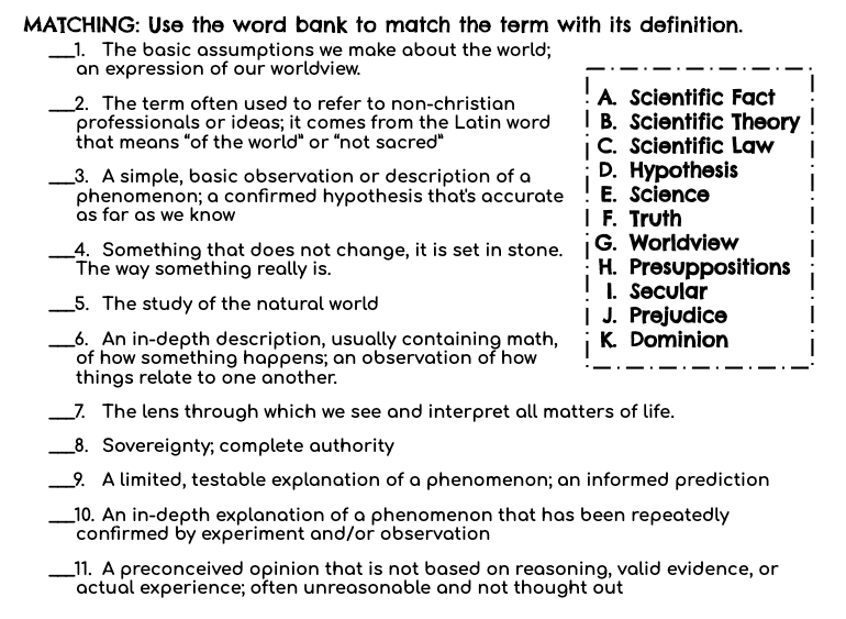 Put the scientific terms in the correct category. (this is in place of the circular graphic we did in class)