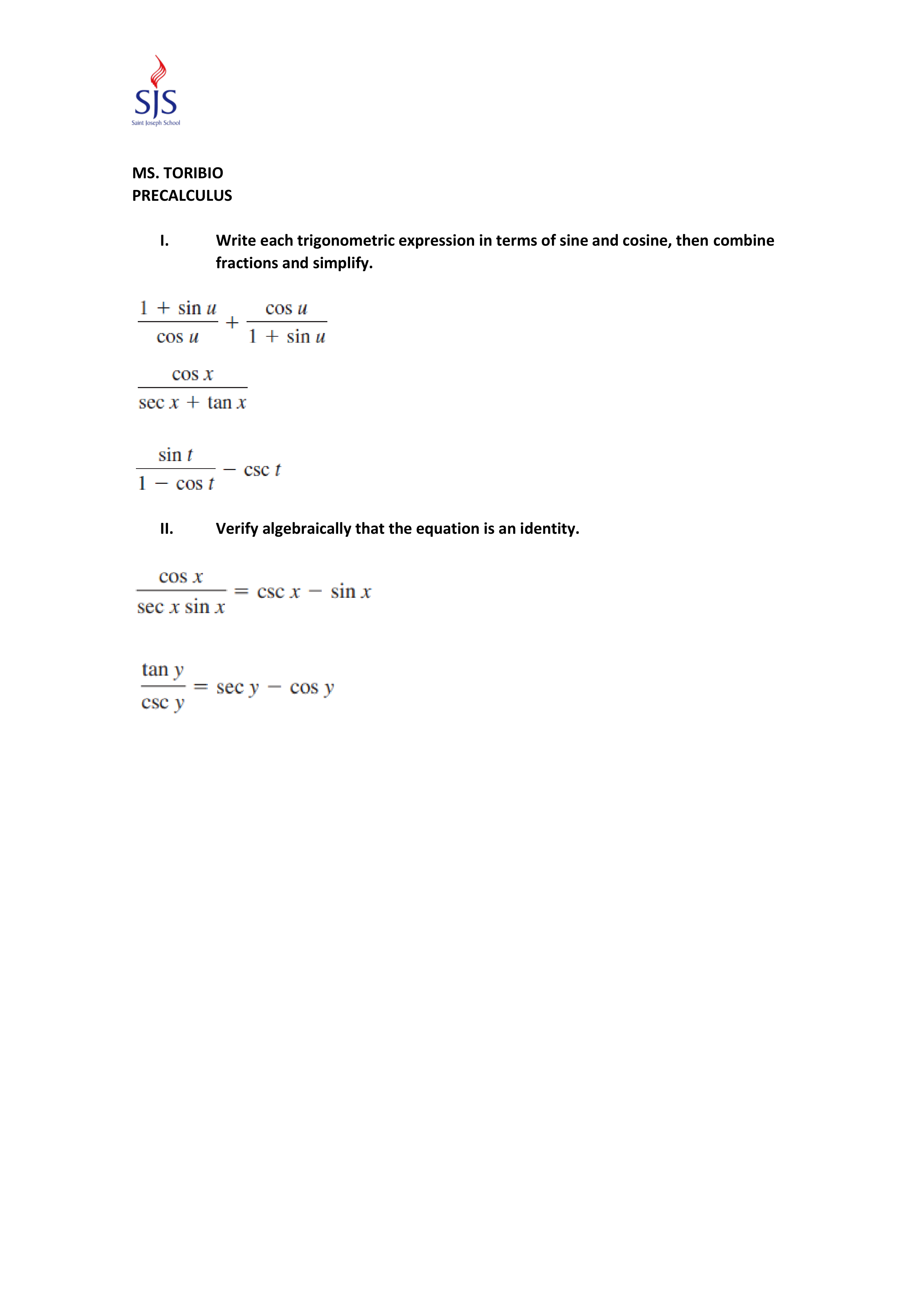 one of the reasons to use identities is so you can rewrite an equation so that there is only one trig function involved. rewrite this equation so that is is only one trig function