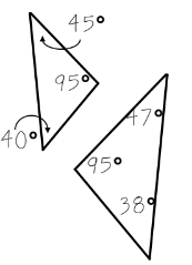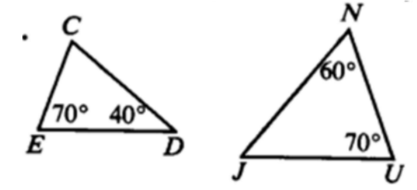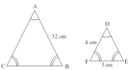 The length of side DE is _______ units, the length of side AC is _______ units and the length of side BC is _______ units.