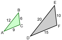 The scale factor from triangle ABC to triangle DEF is _______((put your answer in fraction form!)