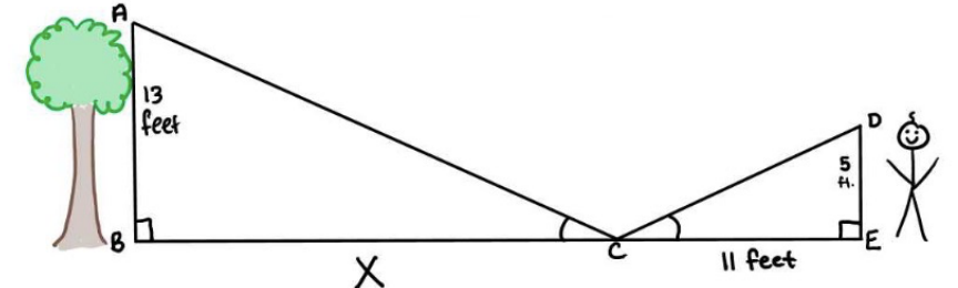 The bottom of the tree is _______ feet from point C on the ground (just type in the number!)