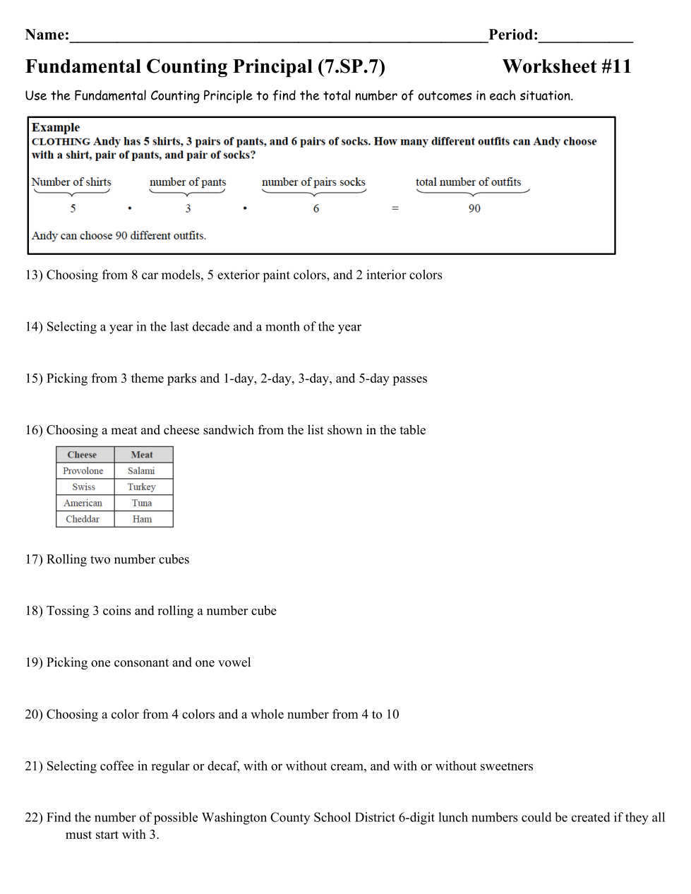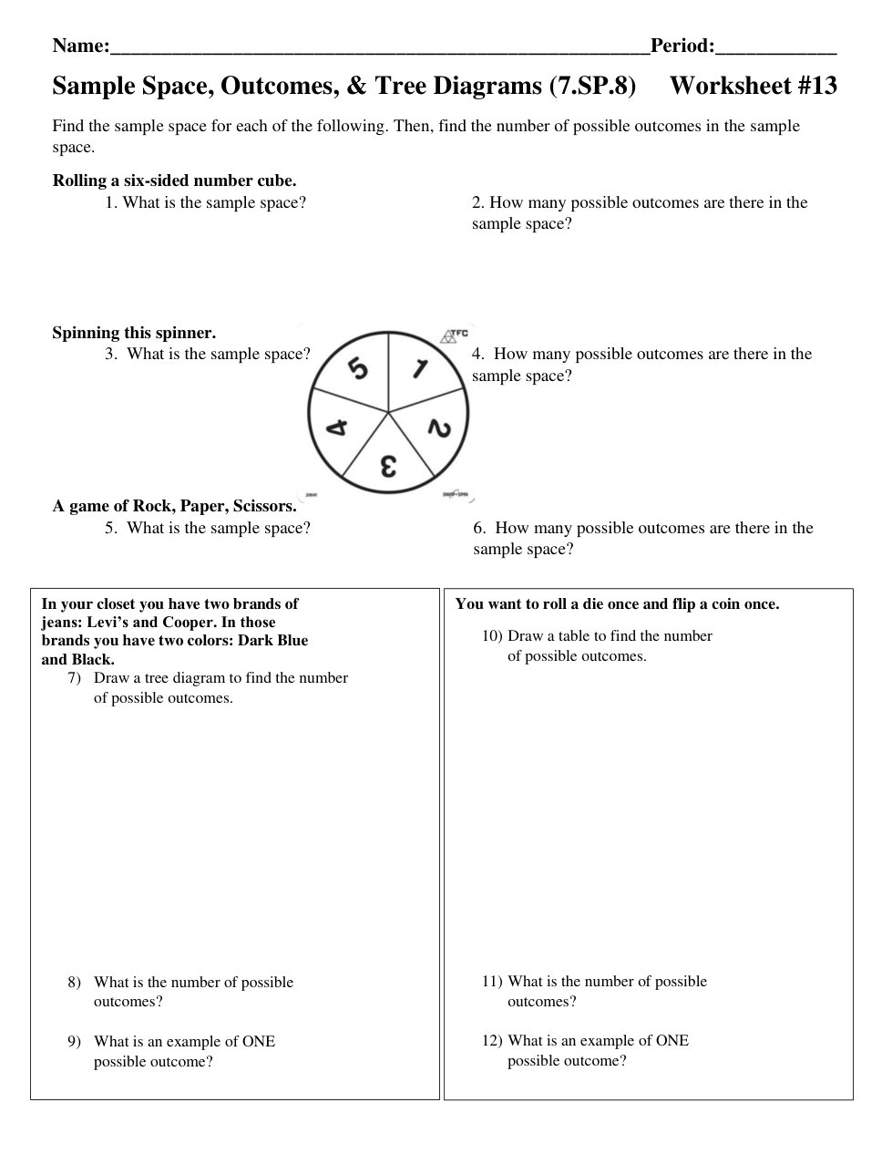 734LRIS WS #13 (Gray) Sample Space, Outcomes, Diagrams, & Fundamental Counting Principle