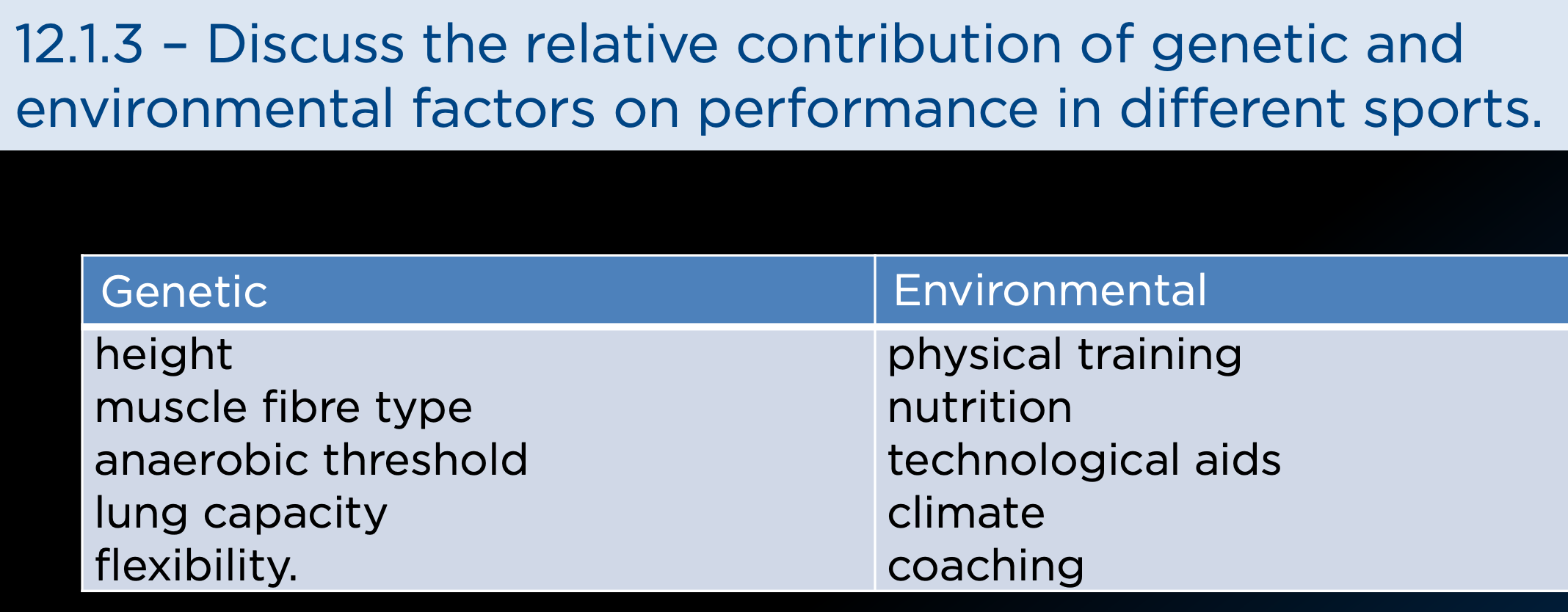 Using sporting examples, discuss the contribution of genetic factors to potential success.
