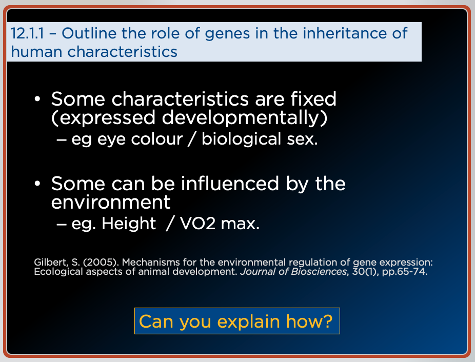 Outline how characteristics of an elite basketball player can be influenced by their genes.