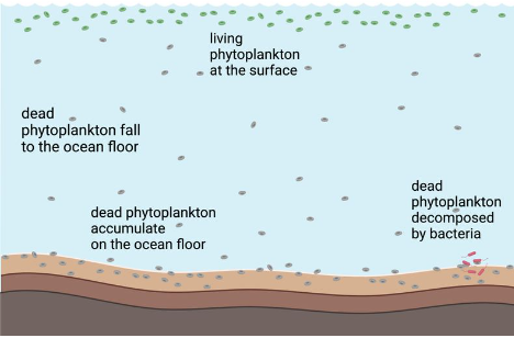 Each phytoplankton only lives a few days. When they die, they sink to the bottom, where they are decomposed by bacteria. As more and more phytoplankton die and fall to the bottom, what do you expect happens to bacteria populations?