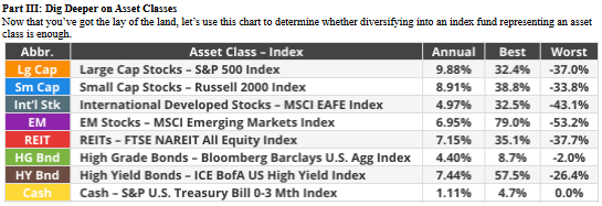 Now that you’ve got the lay of the land, let’s use this chart to determine whether diversifying into an index fund representing an asset class is enough.