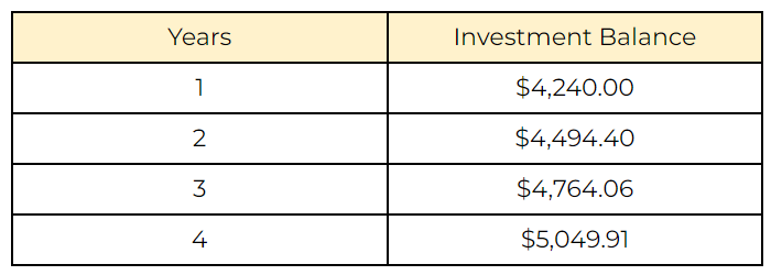 You modeled the growth of your investment using the following table.  What is the growth rate each year?_______ %