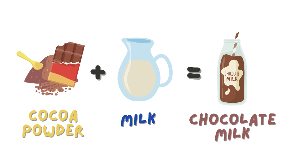 You are making a cup of chocolate milk for yourself, and you need the two ingredients below. Identify the solvent, solute and solution. Drag the correct answer to the box.