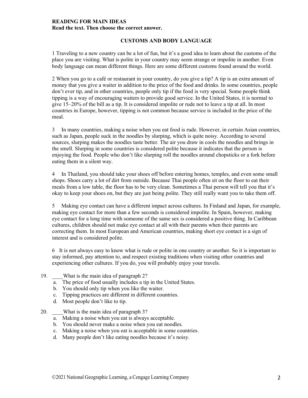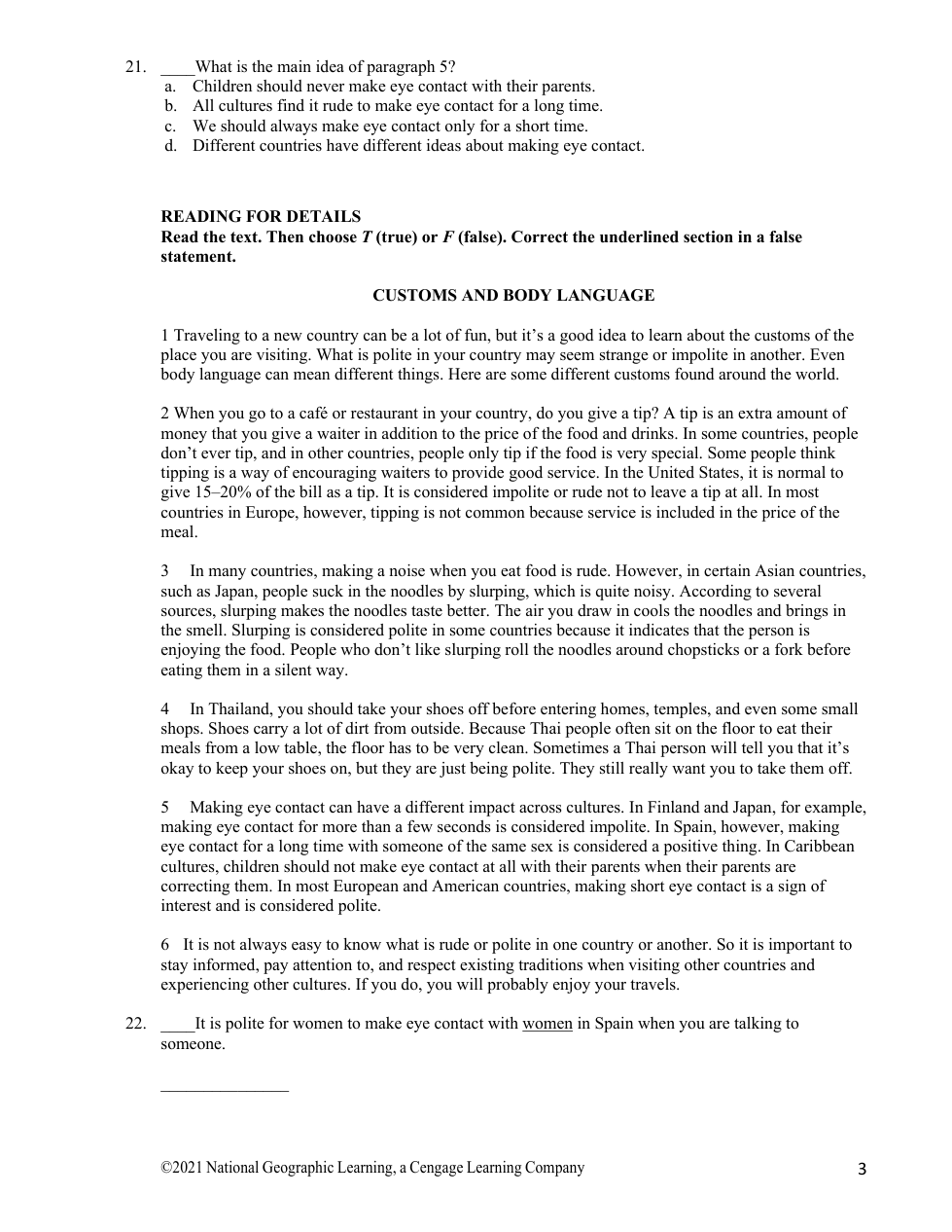 What questions personalize new information you read about customs and body language?