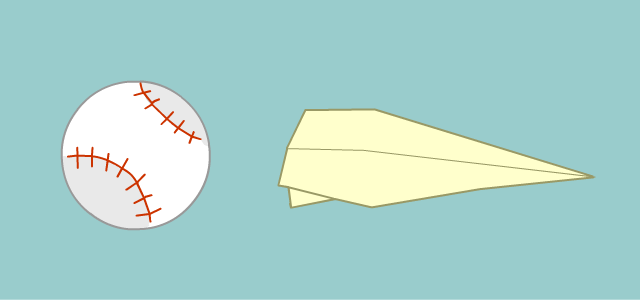 because the baseball is lighter than the paper plane