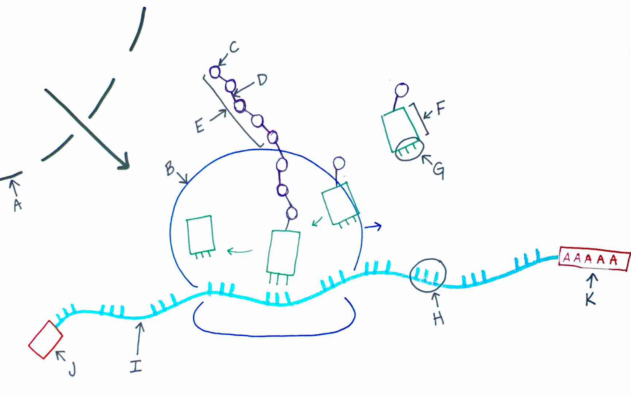 mRNA | arrow_right_alt | C (this is pointing to one of the purple circles) |