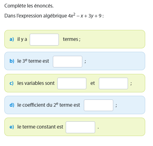 Quel est le coefficient du 2e terme dans cette expression algébrique?