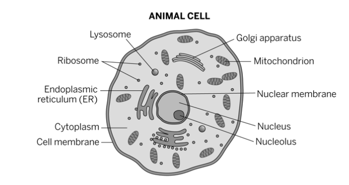 Animal cells have structures that perform specific functions in the cell. Mitochondria are organelles that float within the cell. Because they produce most of the cell's energy, mitochondria are nicknamed "the powerhouse of the cell".