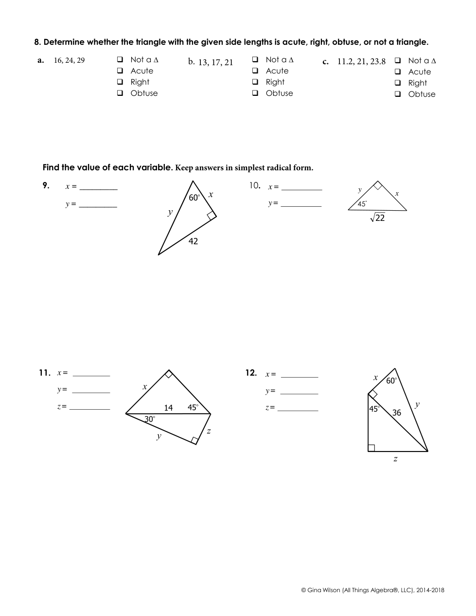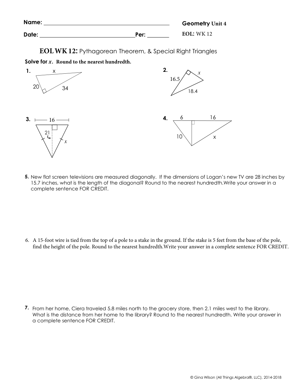 ONLY submit work and answers for each individual problem. SHOW YOUR WORK for how your got your answers for full credit.
