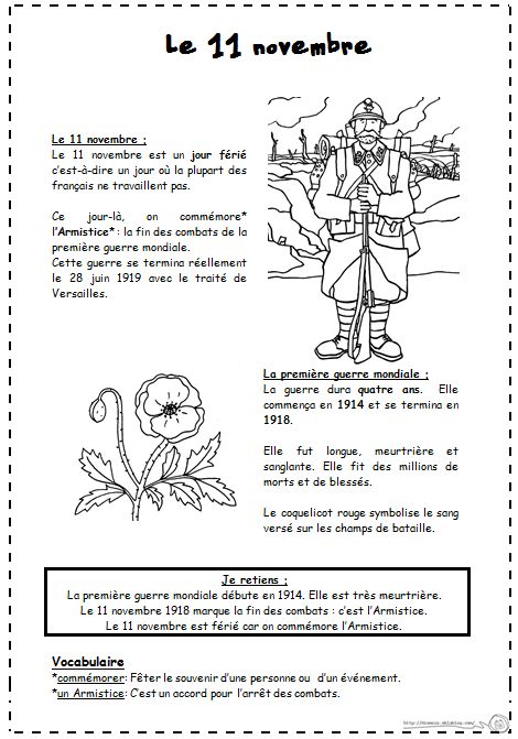 Le Jour du Souvenir - Jour de l'Armistice - le 11 novembre
