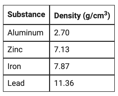Stan is trying to determine the identity of his unknown sample using the density chart. Stan really believes that his sample is made of aluminum. He measures the mass of the sample and finds it to be 30 g. He measures the volume of his sample and finds it to be 11.11 cm3. Is Stan correct in thinking his sample is aluminum?