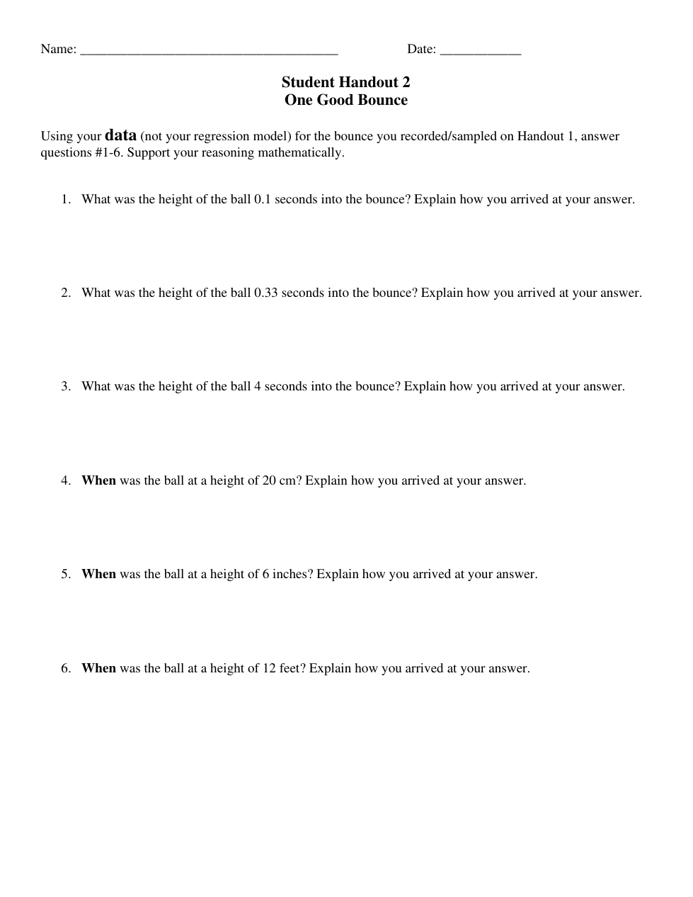 Using your video or chart on #2, when was the ball at a height of 6 inches?