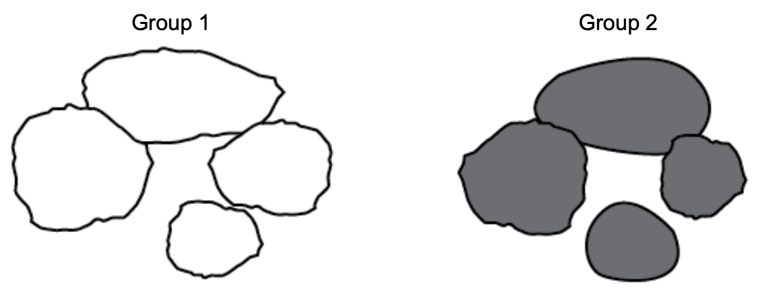 Students sorted some rocks into two groups.