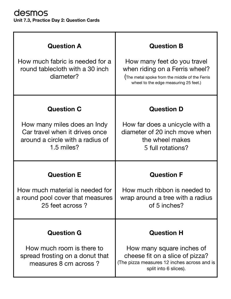 Write answers in terms of pi or, round to the tenths place (if necessary).