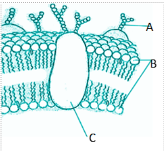 In the diagram of the plasma membrane shown below, which structures are indicated by A, B & C