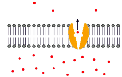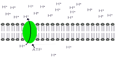 Look at the cross section of a cell membrane of a eukaryotic cell in which H+ ions are being pumped across the cell membrane.