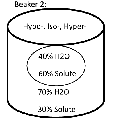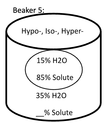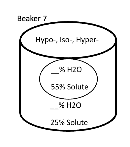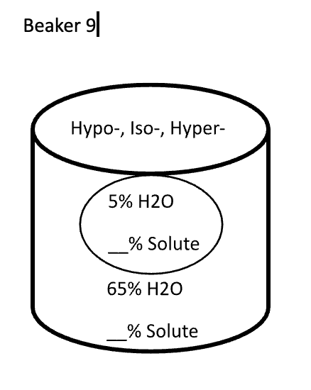 Fill in the missing percentages, then draw an arrow to show the direction that water would move for beaker 11.