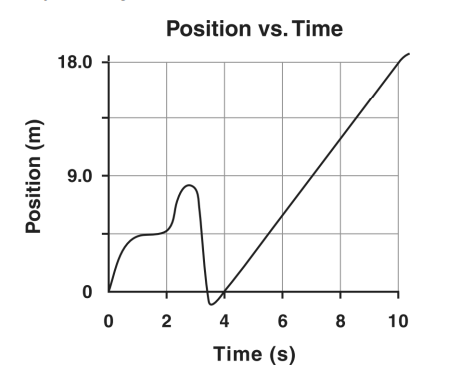 The graph shows how the position of an object changes over time. What is the velocity of the object during the time interval from 4 seconds to 10 seconds?