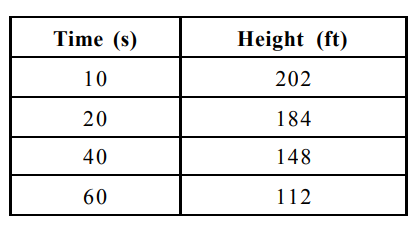 The table shows the height of an elevator above ground level after a certain amount of time. Let y stand for the height of the elevator in feet and let x stand for the time in seconds.