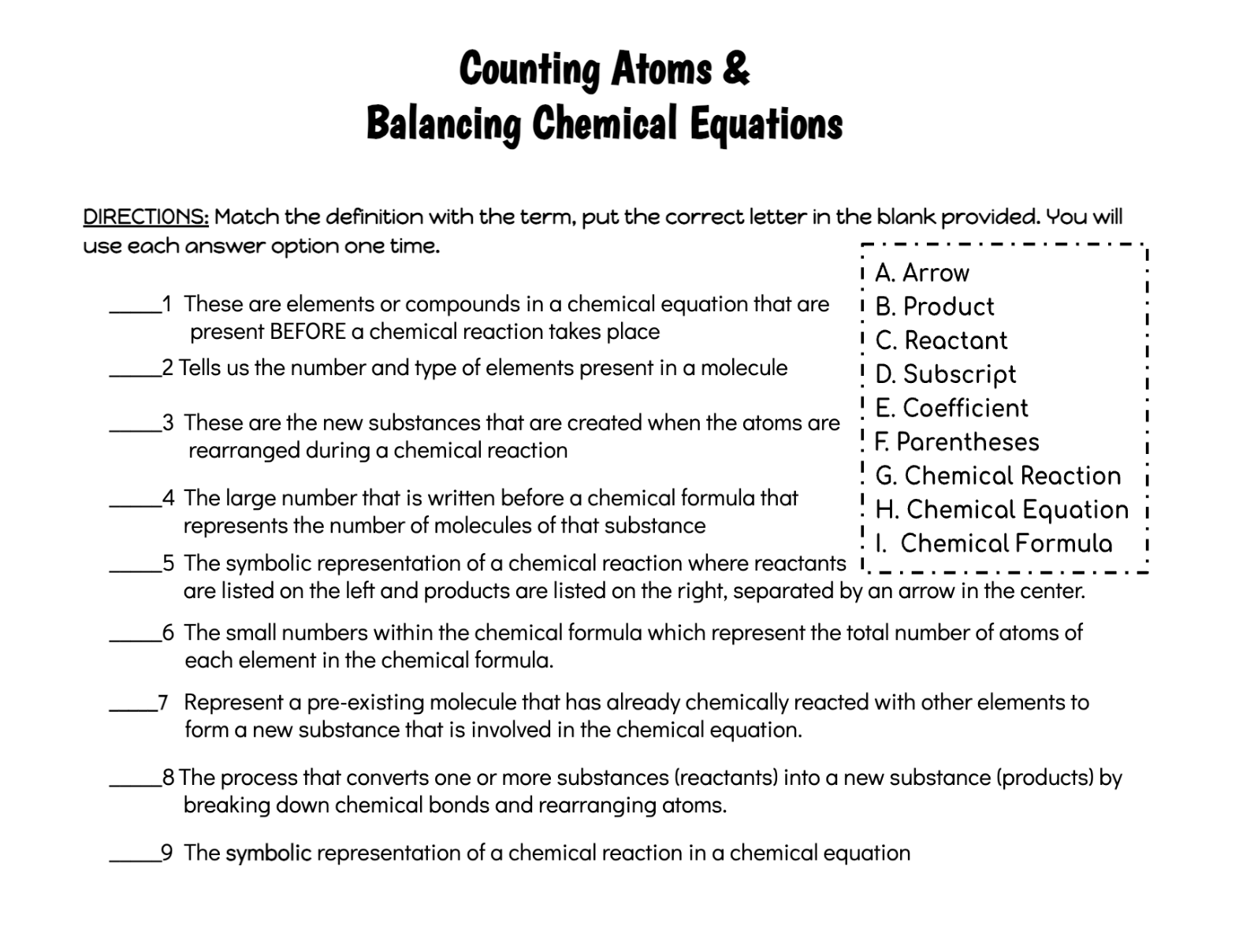 Kinetic Molecular Theory of Matter & Balancing Chemical Equations Test