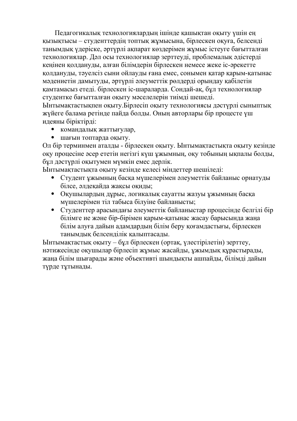 Ынтымақтастық оқыту кезінде келесі міндеттер шешіледі: