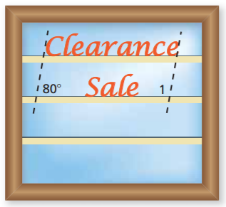 A store owner uses pieces of tape to paint a window advertisement. The letters are slanted at an 80° angle. What is the measure of ∠1?
