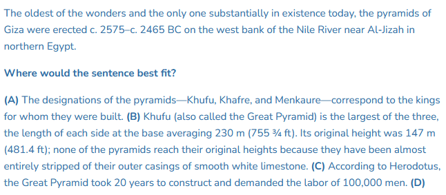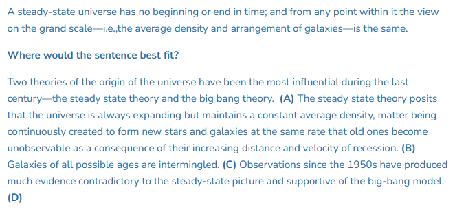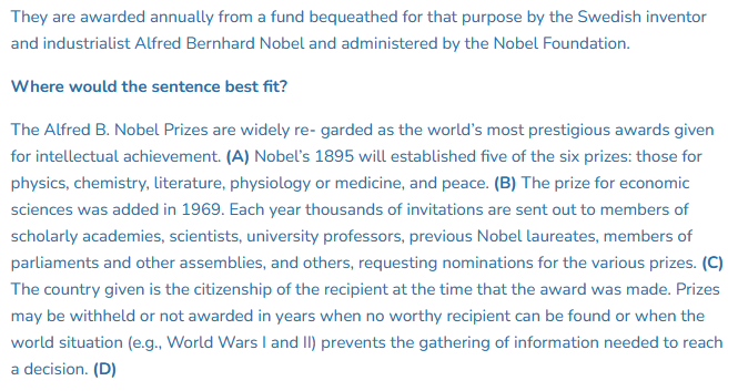 The options (A), (B), (C), and (D) indicate where the following sentence can be added to the passage.