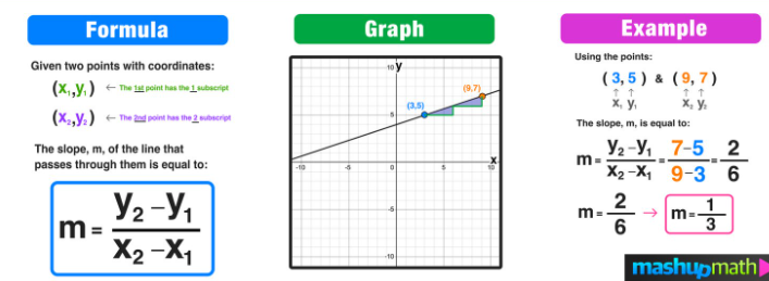 Use the slope formula to calculate the slope of the line that runs through the points given.