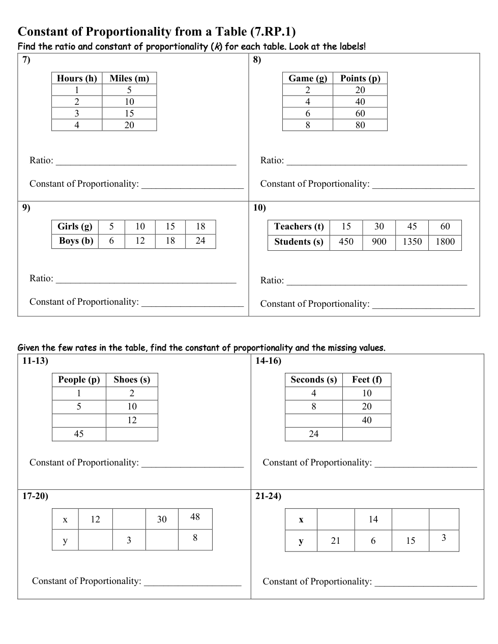 734LRIS WS#20 (Blue) Constant of Proportionality from a Graph & Table