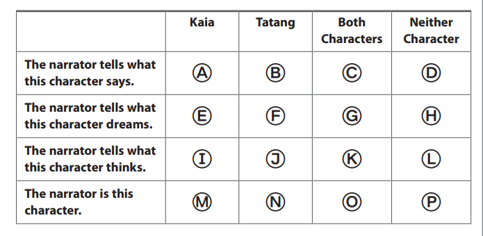 Choose order of bubbles to show whether the statement is about Kaia, Tatang, both characters, or neither character.