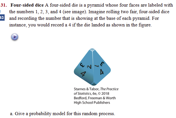 The picture makes this more confusing. You can roll a 1,2,3 or 4 on this die.