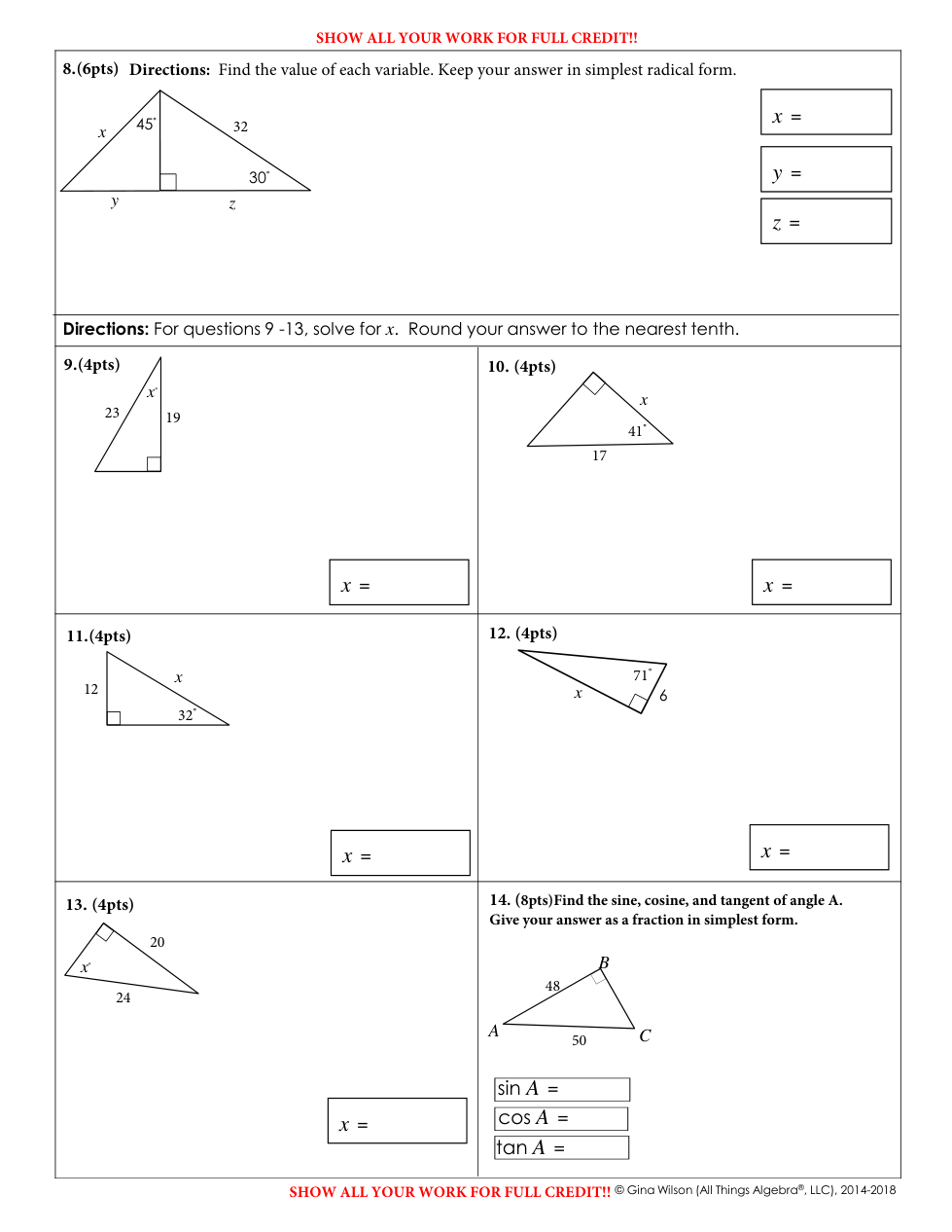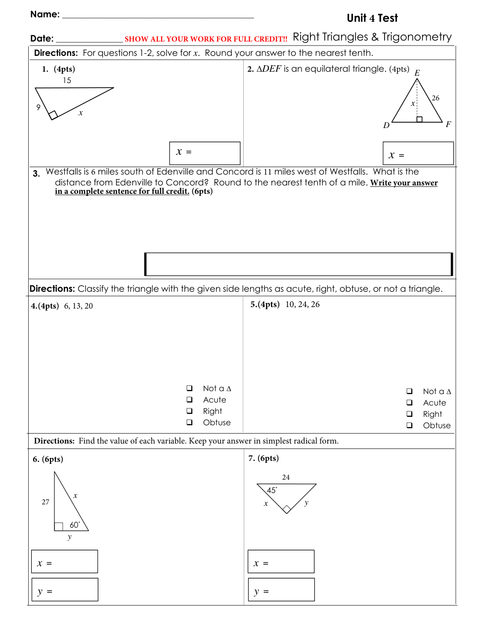Week 14 TEST Unit 4 Right Triangle