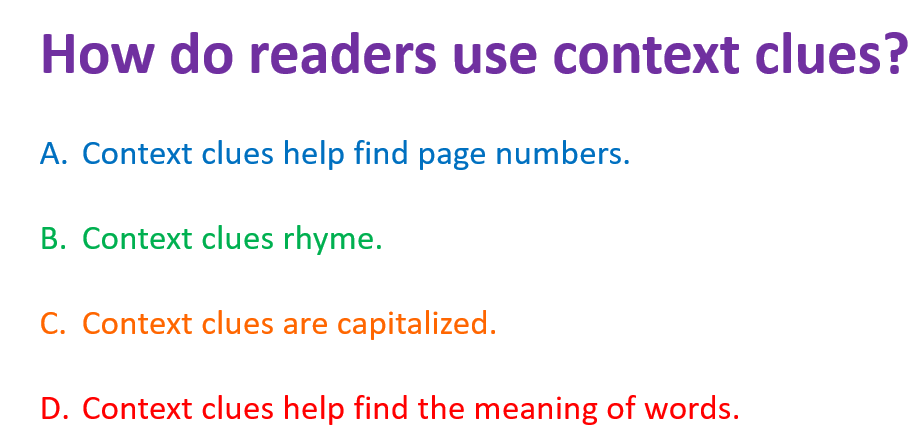D. Context clues help find the meaning of words.