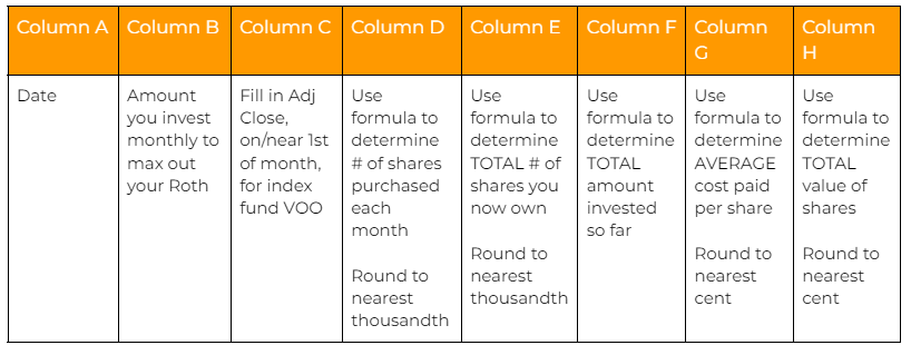 4. Make a copy of this Dollar Cost Averaging Spreadsheet and complete your copy as follows: