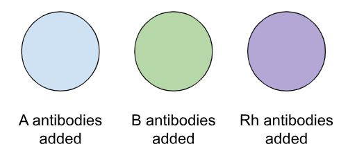 Mr. Bobo donates his blood. The workers at the blood bank test for the presence of A, B, and Rh antigens by adding antibodies to Mr. Bobo's blood - the results are shown below: