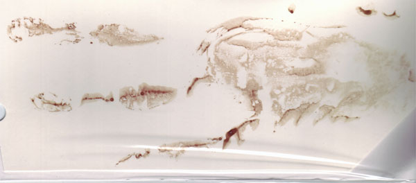 Match the blood spatter/non-spatter patterns to their appropriate description