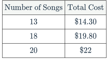 The table below shows the cost of downloading songs from a website.