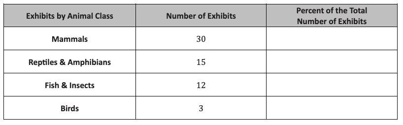 There are 60 animal exhibits at the local zoo. What percent of the zoo’s exhibits are Mammals?