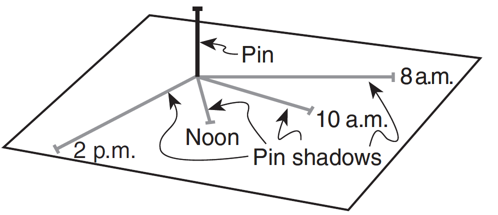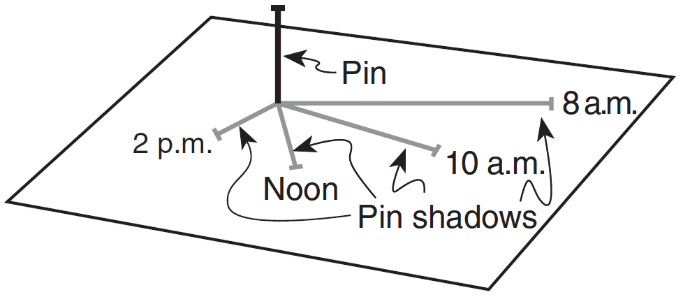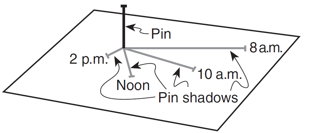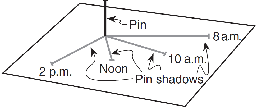The changing location of the pin's shadow on March 21 is caused by
