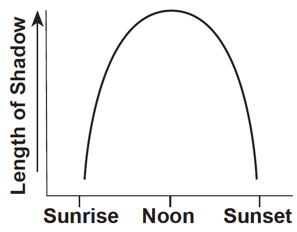 Which graph best shows the length of a shadow cast from sunrise to sunset by a flagpole in New York State?