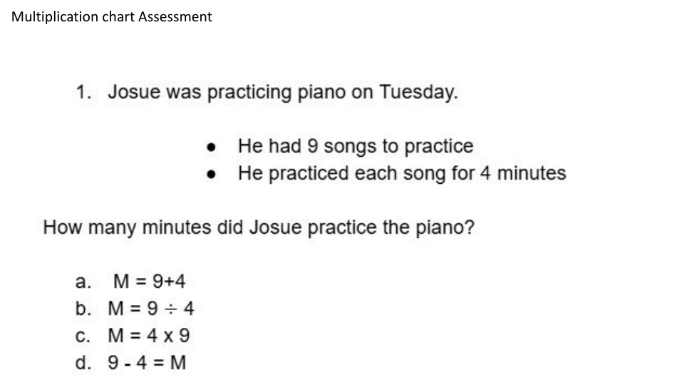 OA.9 Multiplication table assessment