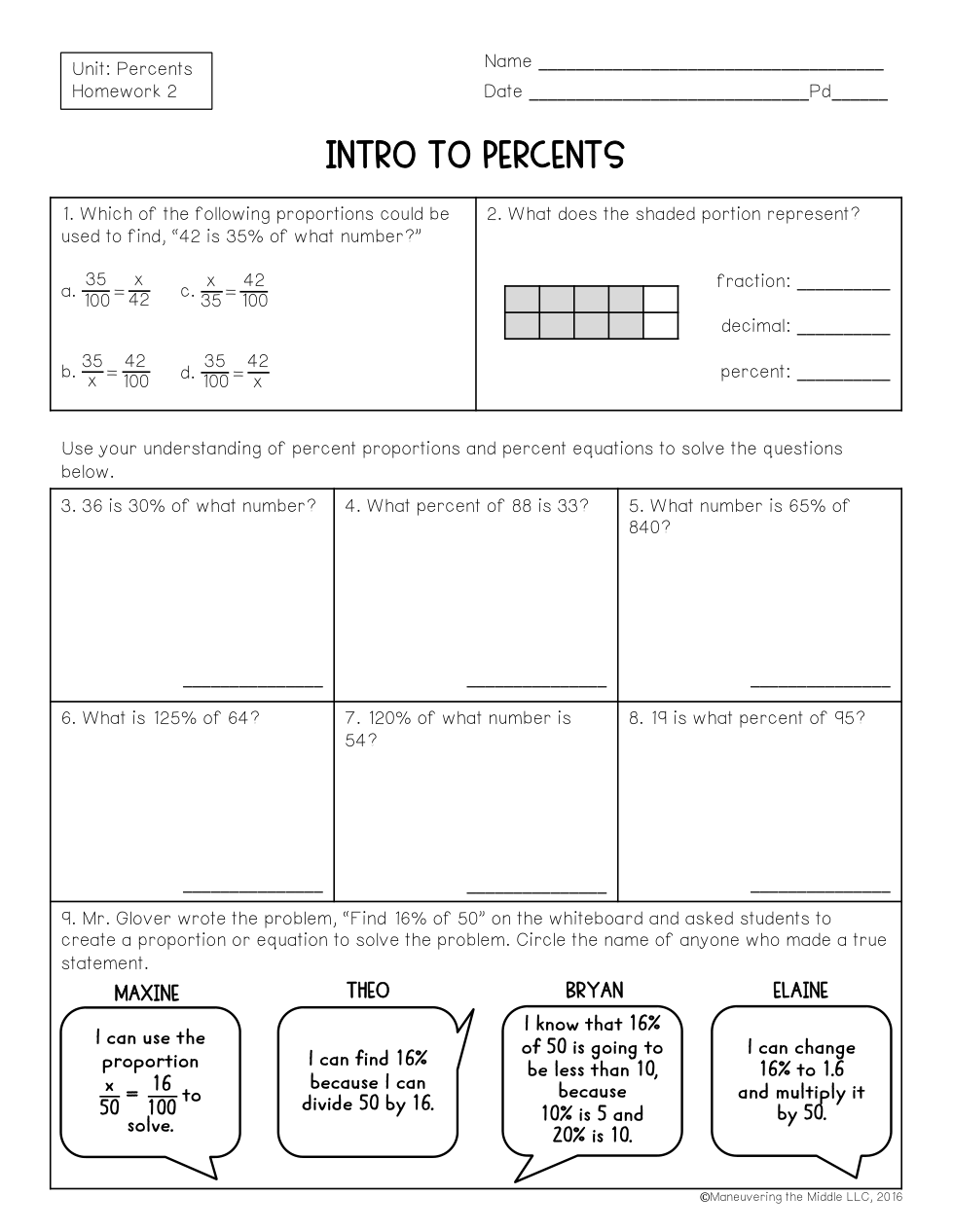 HW #2 MTM Intro to Percents