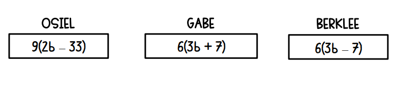 Mrs. Kalina asked her students to rewrite the expression 18b - 42 by factoring out the GCF. Which student correctly completed the task?
