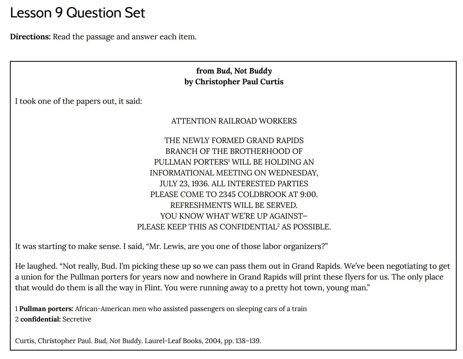 e. “We’ve been negotiating to get a union for the Pullman porters for years now.”